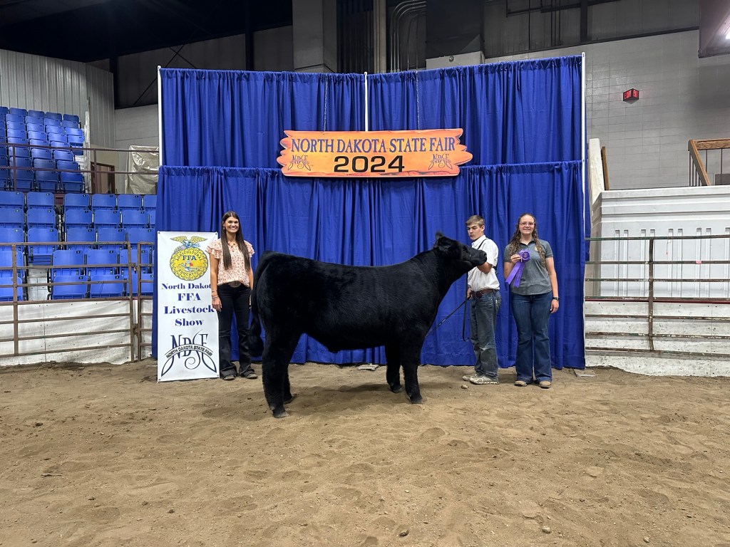 Summer means attending numerous shows. Here’s Merrick with his Grand Champion Steer at the ND State Fair for the FFA show.